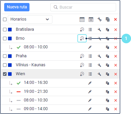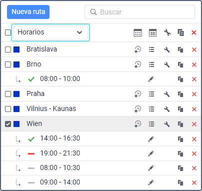 Las operaciones con horarios se describen en la página Gestión de rutas.
