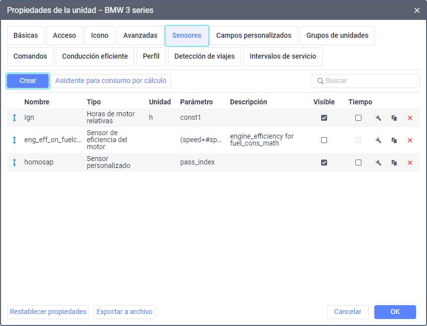 1. Para todas las unidades a las que quiere asignar automáticamente remolques cree un sensor de tipo Asignación de remolque. Se hace de la misma manera que el sensor de tipo Asignación de conductor.