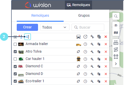 2. En la pestaña Remolques, haga clic en el icono .
