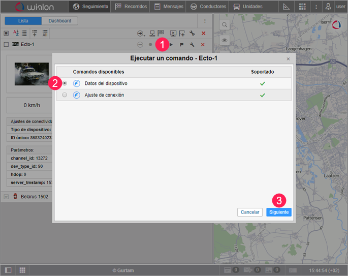 - Envíe el comando a la unidad desde la pestaña Seguimiento.