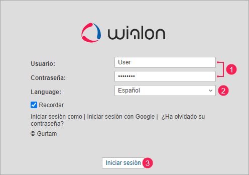 Introduzca el nombre de usuario y la contraseña (1).