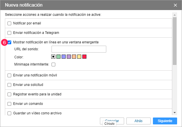 Marque las acciones a realizarse al activarse la notificación.