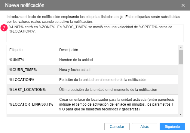 Indique los parámetros de activarse la notificación.