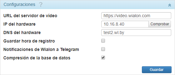 | URL del servidor de vídeo | Es la dirección del servicio para el procesamiento y almacenamiento de archivos de vídeo enviados por los dispositivos. |