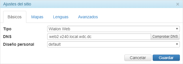 DNSEn este campo se indica el nombre de dominio del sitio. Puede asegurarse de que el sitio está disponible al apretar el botón Comprobar DNS.