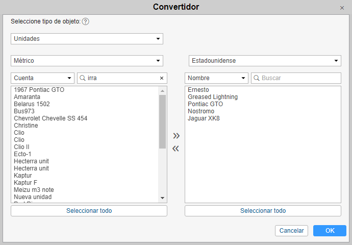 Cuando se realiza conversión de recursos, a otras unidades será recalculado algún contenido suyo: radios de geocercas-círculos, varios ajustes de tareas y notificaciones, etc.