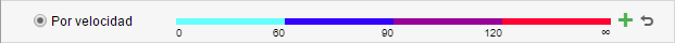 Según esta opción, el color del recorrido se cambia de acuerdo con la velocidad. Para introducir los valores de intervalos de velocidad y ajustar colores para los mismos, apriete el botón de agregar un intervalo (