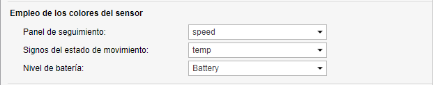 En esta sección están disponibles tres listas desplegables que permiten elegir los sensores cuyos colores tienen que usarse para: