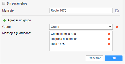 Mientras crear un comando del tipo Enviar mensaje personalizado se puede crear grupos y agregar mensajes a los mismos. Esto permite encontrar el mensaje necesario rápidamente mientras ejecutar el comando más tarde.