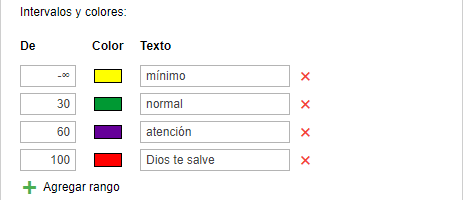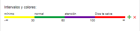 Note la siguiente peculiaridad del sistema: si un sensor envía valores menores de los que están indicados en el primer intervalo, estos valores se considerarán una parte de dicho intervalo y se pintarán de su color.