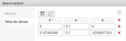 Tabla de cálculo del sensor