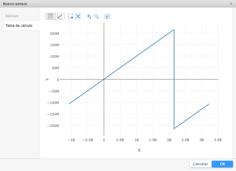 En caso si su dispositivo envía valores con signos (signed) en algún parámetro (puede ser, por ejemplo, el parámetro de temperatura), hay que crear un sensor a base de este parámetro y configurar la tabla de cálculo debidamente.