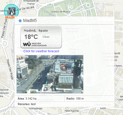 Además, si en la descripción de una geocerca había enlaces a imágenes de otros recursos (vídeos de cámaras web, fotos, cotizaciones, pronóstico del tiempo), también se mostrarán.