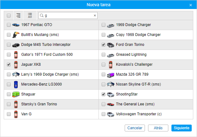 Elección de unidades para tareas/notificaciones