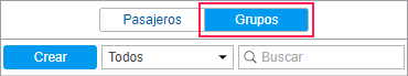 Para trabajar con grupos de pasajeros, escoja el modo correspondiente en el panel Pasajeros.