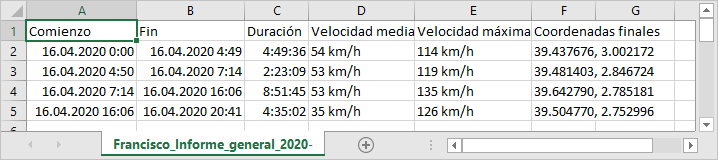 Excel (formato .xlsx) es una aplicación distribuida por Microsoft Office para hojas de cálculo. Los datos van representados en forma de tablas electrónicas. El informe se divide en varias páginas-pestañas. Los datos se introducen en la tabla automáticamente y pueden ser prosesados despúes con ayuda de las herramientas del programa.