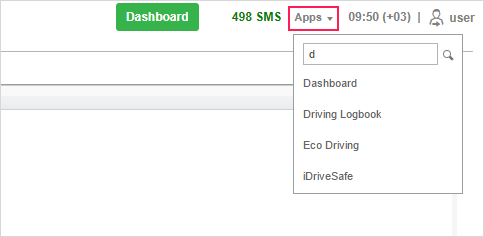 Para lanzar una aplicación, apriete el título Apps en el panel superior. Se abrirá un menú con la lista de todas las aplicaciones disponibles arregladas alfabéticamente. Para encontrar la aplicación rápido utilice el filtro dinámico. Haga clic en el nombre de la aplicación para abrirla en una pestaña nueva del navegador.
