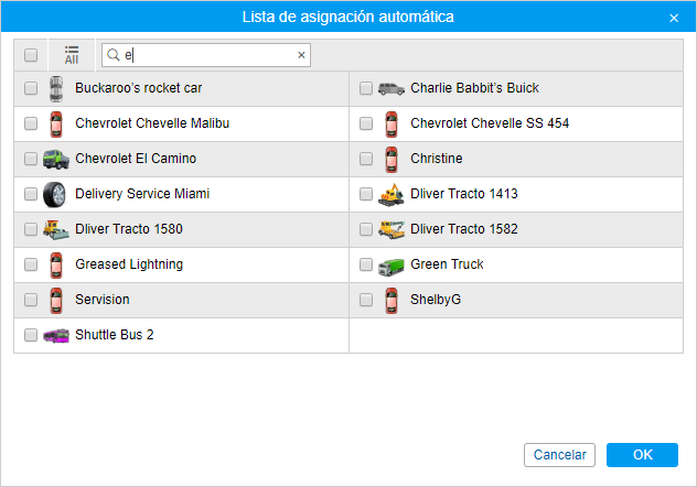 En la lista de asignación automática solo se muestran aquellas unidades a las que el usuario tiene el derecho Utilizar unidad en tareas, notificaciones, rutas, repetidores.