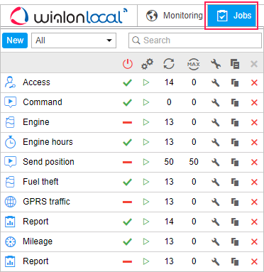 Si el usuario actual no tiene el derecho de acceso a Utilizar unidad en tareas, notificaciones, rutas, repetidores con respecto al recurso a que pertenece una tarea, unas acciones con ésta serán imposibles (activar/desactivar, modificar, eliminar).