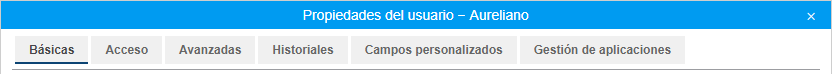 El diálogo de parámetros del usuario puede tener hasta 6 pestañas (depende de los derechos) descritos arriba: