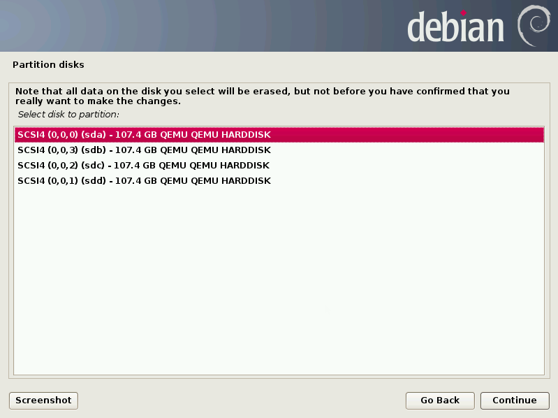 Escoja el tipo de instalación: en una, dos (RAID-1), cuatro (RAID-10) u 8 (RAID-10) unidades. Se puede escoger también el modo de instalación manual (Custom GUI mode).