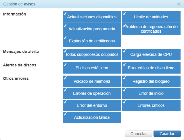 Para ajustar el contenido de avisos al administrador, haga clic en el icono