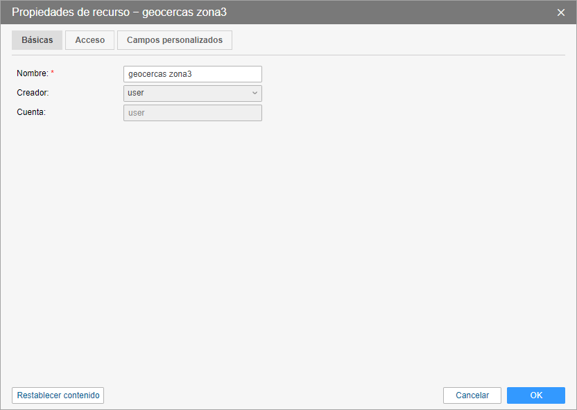 | Creador | Es el usuario en nombre del cual está creado el recurso. No puede cambiar el creador del recurso. |