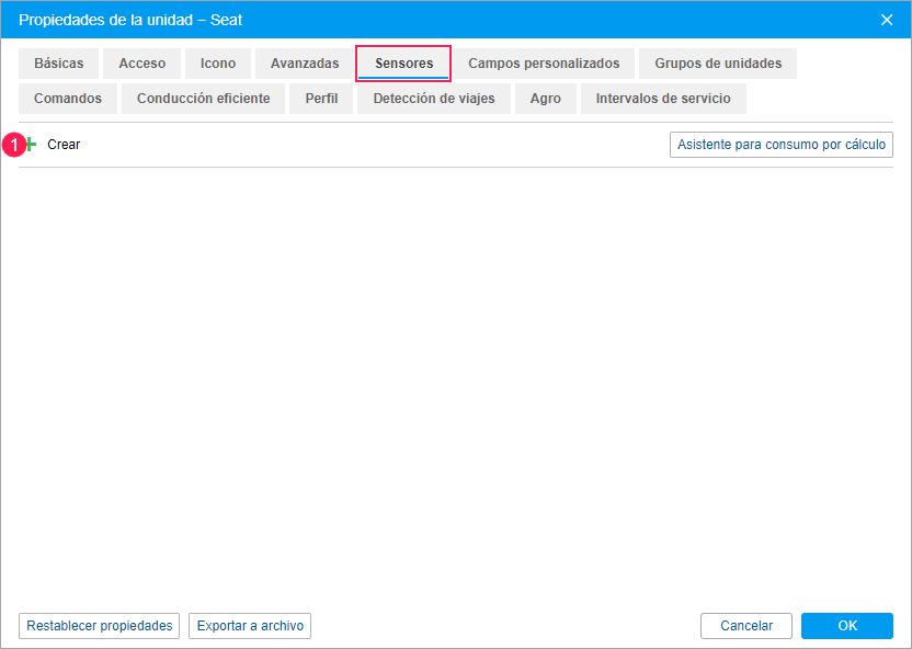 ) en la pestaña Sensores de las propiedades de la unidad necesaria.