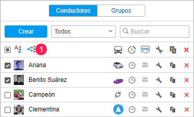 Se puede asignar y separar el conductor de la unidad manualmente en el modo Conductores o Grupos en la pestaña Conductores empleando los iconos