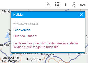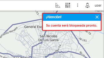 En la barra superior debajo del nombre de usuario pueden aparecer mensajes informativos del mánager del servicio, así como notificaciones del número de días que quedan hasta la desconexión del sistema de rastreo (si se supone por la tarifa).