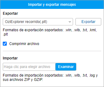 Wialon permite realizar la exportación/importación de mensajes. Solo se puede hacerlo con los mensajes del primer tipo, con los mensajes de datos.