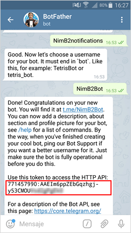 Del mismo modo, se puede configurar el envío de notificaciones a un grupo público. En este caso, añada el bot creado como miembro del grupo.