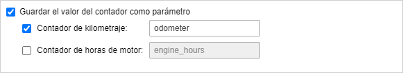 Al activarse una notificación, se puede guardar el valor actual del kilometraje o horas de motor como un parámetro en el mensaje (odometer o engine_hours, respectivamente). Esto permite mostrar después los valores inicial y final del kilometraje en el informe de viajes, así como transformar el parámetro engine hours en el sensor de horas de motor para el trabajo futuro con éste. Se recomienda guardar los valores del sensor durante el estacionamiento (por ejemplo, una vez en 24 horas por la noche) para cálculos más precisos.