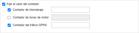 Puede ser útil cuando, por ejemplo, al entrar en una geocerca hay que cambiar (reiniciar, digamos) el valor de sensores de kilometraje, horas de motor y/o tráfico GPRS. Marque los sensores correspondientes y indique los valores necesarios enfrente.