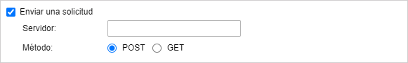 Este modo permite enviar avisos de notificaciones activadas a sistemas ajenos. Una vez elegido este modo de acción, hay que indicar la dirección del servidor y escoger POST o GET en función de la solicitud HTTP.