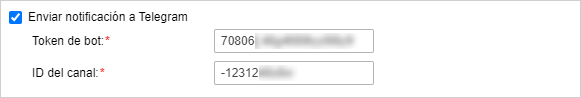 Introduzca el ID del grupo en el campo ID del canal en las propiedades de la notificación en Wialon.
