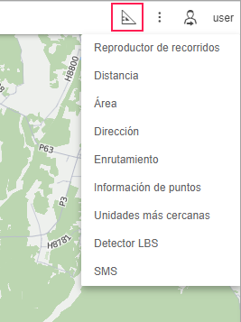 Se usan las unidades de medida de las herramientas relacionadas con informes en línea (Distancia, Área, Enrutamiento, Unidades más cercanas) del usuario actual. Las herramientas del trabajo con los recorridos de unidades (Reproductor de recorridos, Información de puntos) usan las unidades de los parámetros de la unidad.
