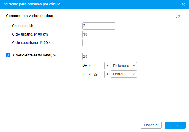 Este ajuste permite indicar el coeficiente de multiplicación o reducción del consumo de combustible para una temporada específica.