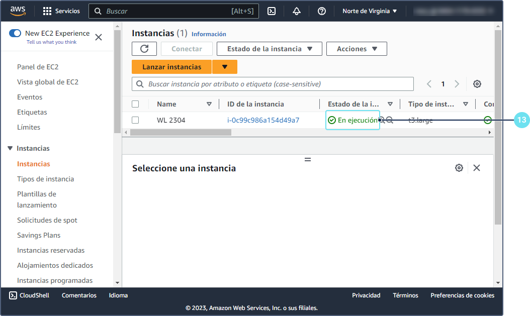 Asegúrese de que la instancia está lanzada.