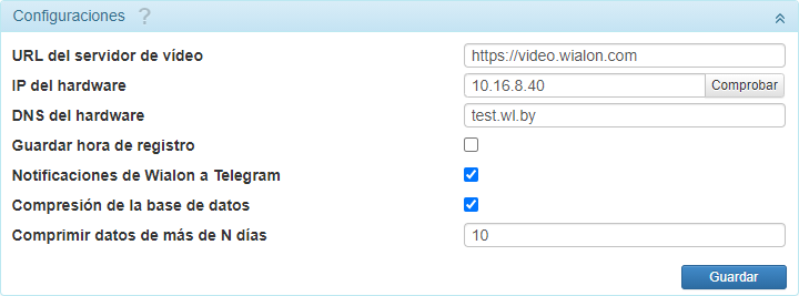 | DNS del hardware | El nombre de dominio del servidor al que se envían datos de las unidades de seguimiento. Se muestra en las propiedades de unidades en el campo Dirección del servidor. |