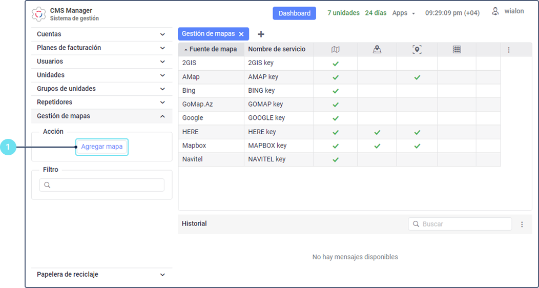 En la sección Gestión de mapas, apriete el botón Agregar mapa.