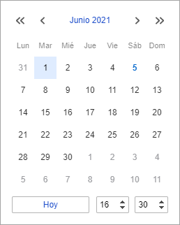 Ponga el cursor en el campo de introducir la fecha y la hora y haga clic izquierdo para abrir el calendario. Utilice flechas para escoger el mes y el año. Se puede apretar las flechas o mover la rueda del ratón. Las flechas simples se utilizan para escoger el mes y las dobles — para escoger el año. Una vez elegidos el mes y el año, haga clic en el día necesario. El calendario se cerrará y en el campo de texto aparecerá la fecha escogida.