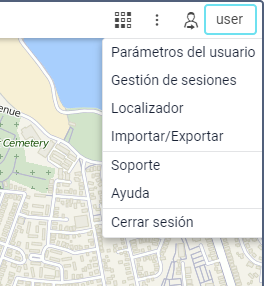 Al apretar el nombre del usuario se abre el menú adicional que contiene los elementos descritos a continuación.