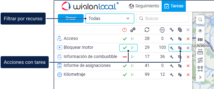 Para gestionar tareas, la cuenta o plan de facturación del usuario debe tener conectado el servicio Tareas. Asimismo, el usuario debe contar con el derecho de acceso al recurso Crear, modificar y eliminar tareas. Se pueden necesitar derechos de acceso adicionales a la unidad en función del tipo de la tarea (vea las páginas con descripción de cada tarea para más detalles).