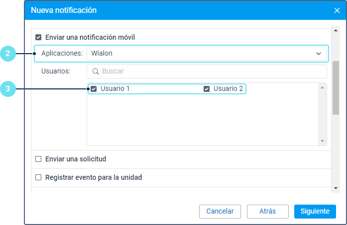 1. Asegúrese de que todos los usuarios que deben recibir notificaciones están autorizados en la aplicación móvil y la opción que permite recibir notificaciones está activada. En caso de Wialon para Android y iOS la opción Notificaciones debe estar activada en los ajustes.