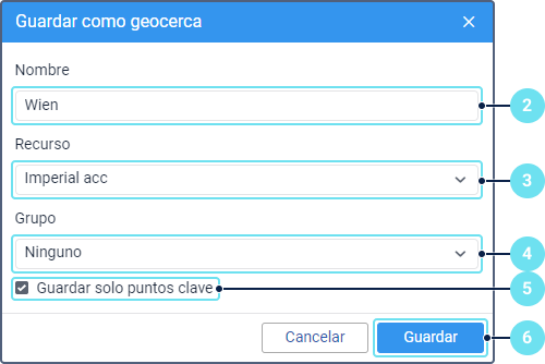 Para guardar la geocerca de esta forma, realice los siguientes pasos: