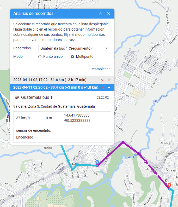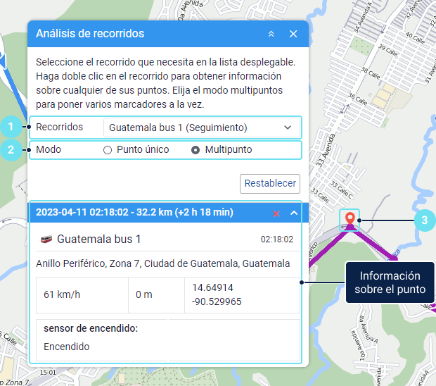 Esta herramienta permite obtener la información detallada sobre los puntos del recorrido. Antes de iniciar, tiene que visualizar el recorrido de la unidad utilizando uno de los siguientes métodos: