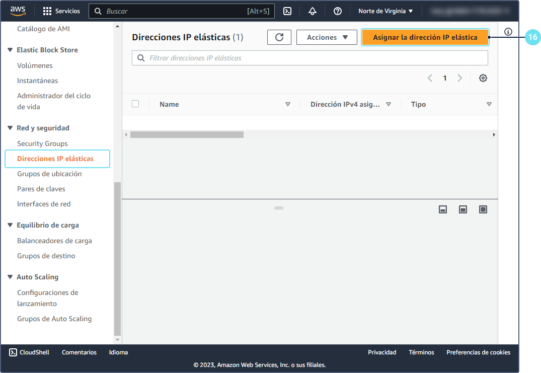 Abra la pestaña Direcciones IP elásticas y apriete el botón Asignar la dirección IP elástica.