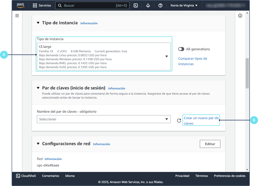 Seleccione un tipo de instancia dependiendo de los requisitos de su servicio.