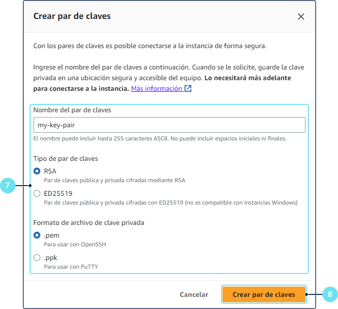 Haga clic en Crear par de claves y guarde el par de claves.